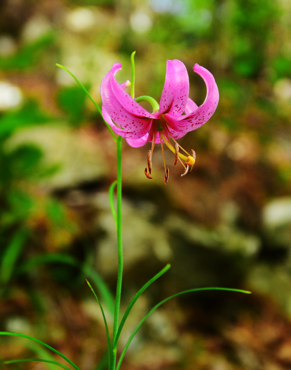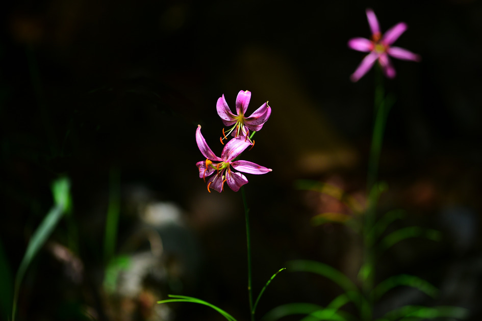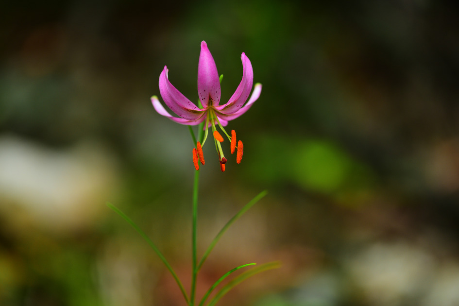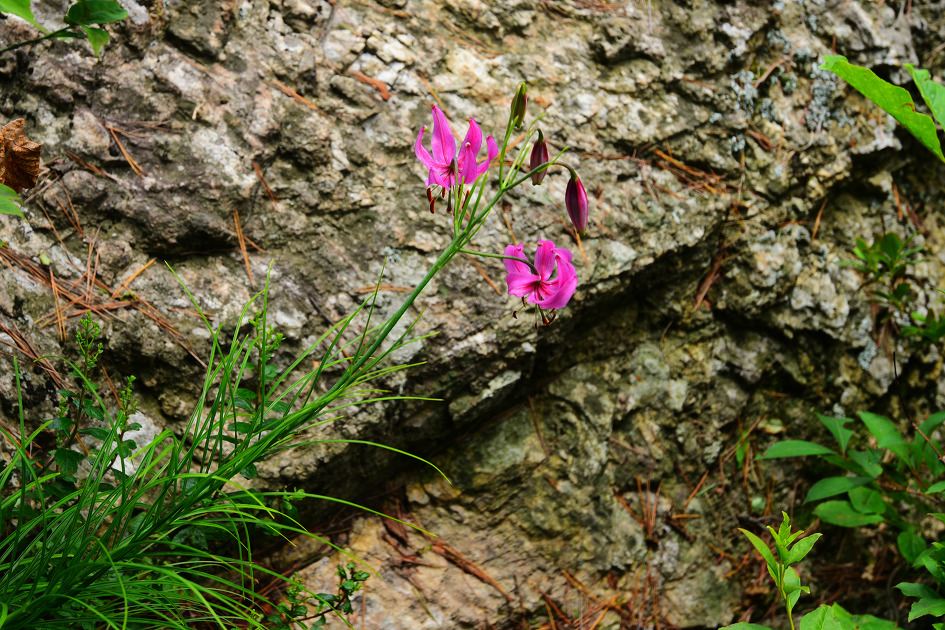 이번에 만나는 솔나리는 비탈진 바위 부근에 비스듬히 살고 있는데, 꽃이 4개나 달려 있었다.